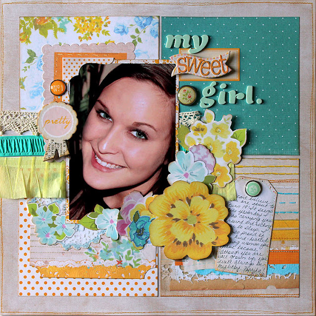 Products: Little Yellow Bicycle (Up in the Trees & Lovely Day) Pattern Papers and Stickers, Jenni Bowlin pocket, Twine from My Minds Eye, Tim Holtz ChitChat word stickers, Sassafrass Lass & American Craft letter stickers, Martha Stewart Label Stickers, and My Minds Eye brads & label stickers. You can find all these wonderful supplies at A Cherry On Top.